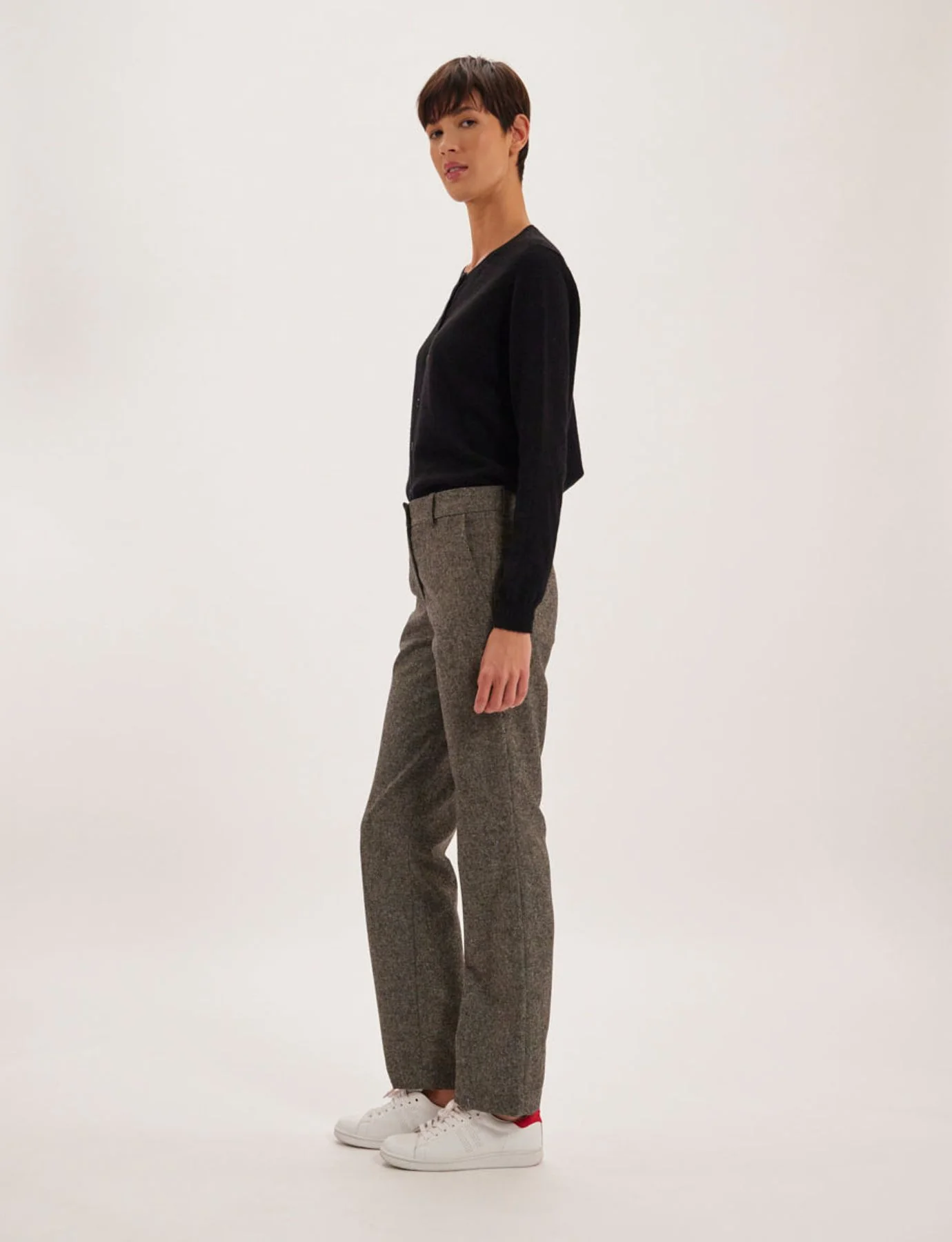 Le pantalon Francisco revient pour la nouvelle saison. Sa coupe droite, très étudiée, affine la silhouette, il est facile à porter avec de nombreuses pièces et permet de créer des looks naturellement très élégants. C'est pourquoi ce pantalon est déjà devenu un « must have » du vestiaire de nombreuses femmes dans le monde. Proposé cette saison en laine mélangée, sa matière est naturellement raffinée et très adaptée à l'hiver. Pantalon coupe droite