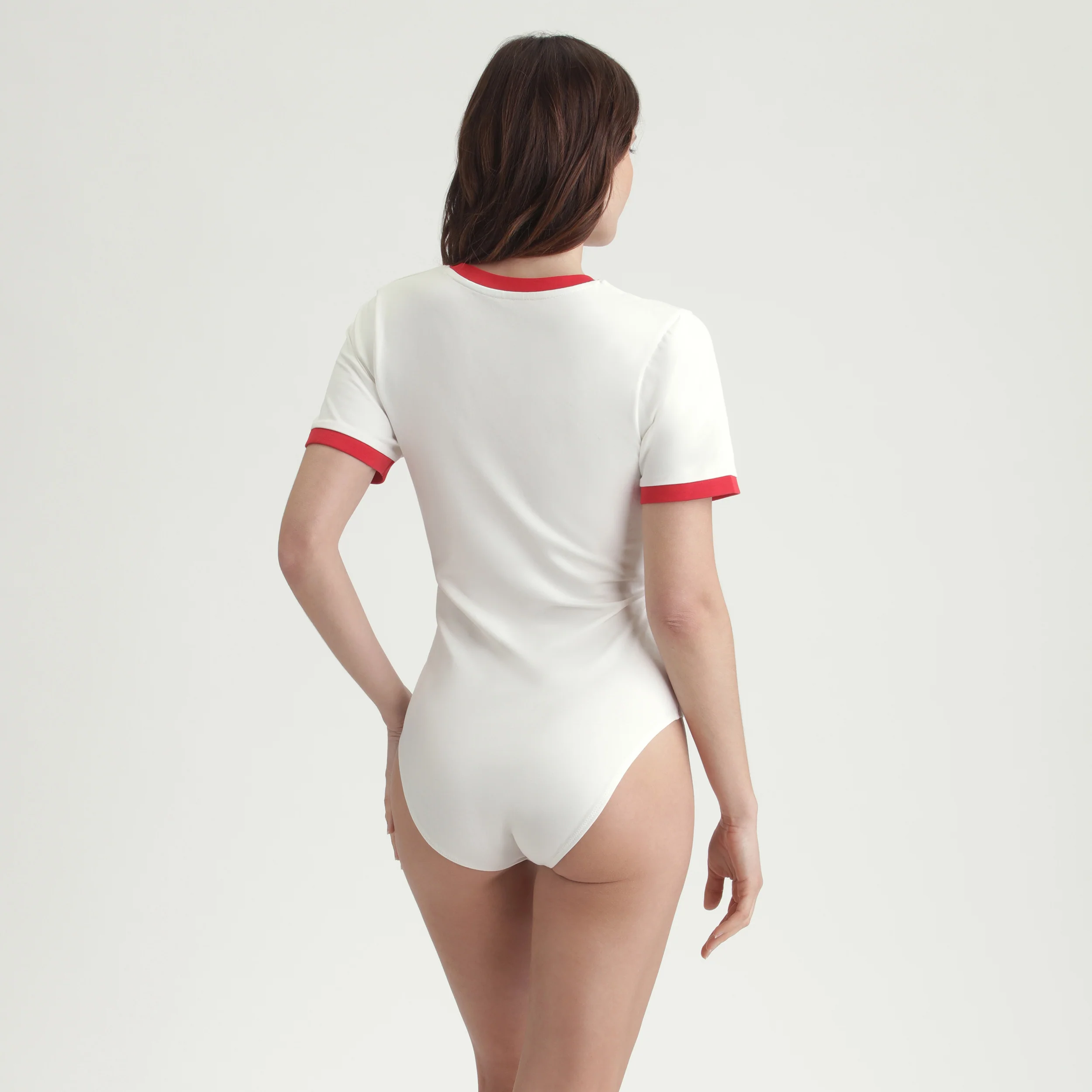 Body Nacre twisté par un col rouge DIM x Ines de La Fressange—