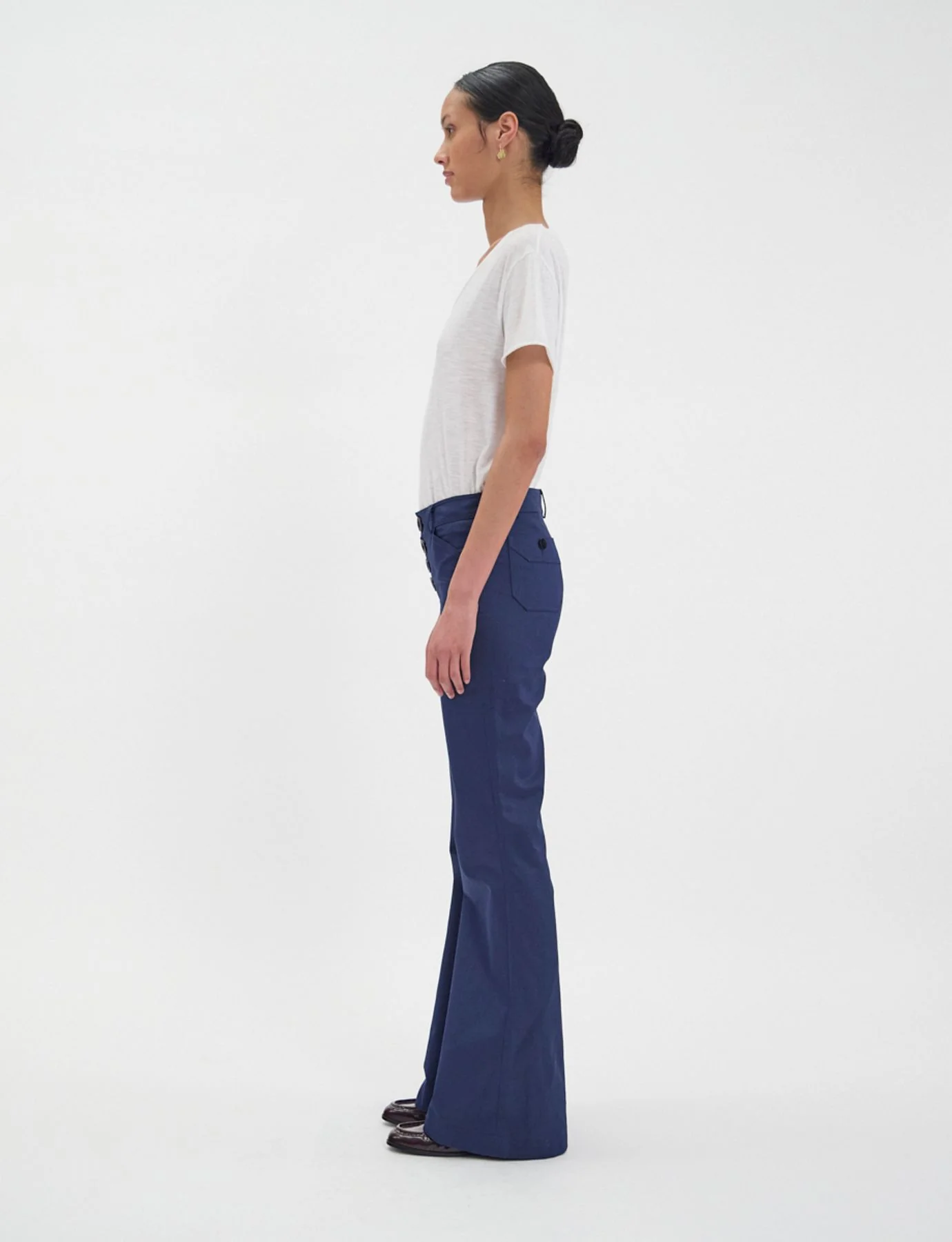 Le pantalon Charlotte, iconique de la Maison revient cette saison dans une nouvelle version. Sa coupe flare très flatteuse inspirée des seventies vous donnera une allure glamour cet hiver, chaque détail est travaillé et son style vous offrira un look que vous adorerez.Boutonnage avant avec boutons corne