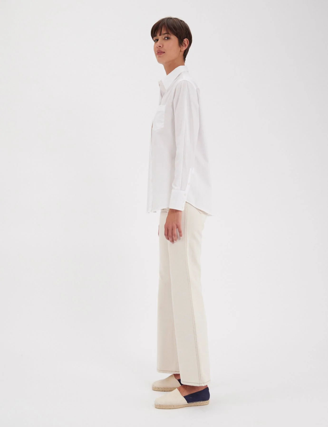 La chemise Maureen, emblématique de la Maison, avec sa coupe droite facile et intemporelle apportera une touche élégante à toutes vos tenues et complémentera à merveille votre garde-robe. La petite broderie Léon sur la poitrine est un détail qui contribue à sa personnalité. Elle convient aussi bien pour une tenue formelle que pour une tenue décontractée associée à un jean brut ou à un jean clair. Chemise en popeline 100% coton